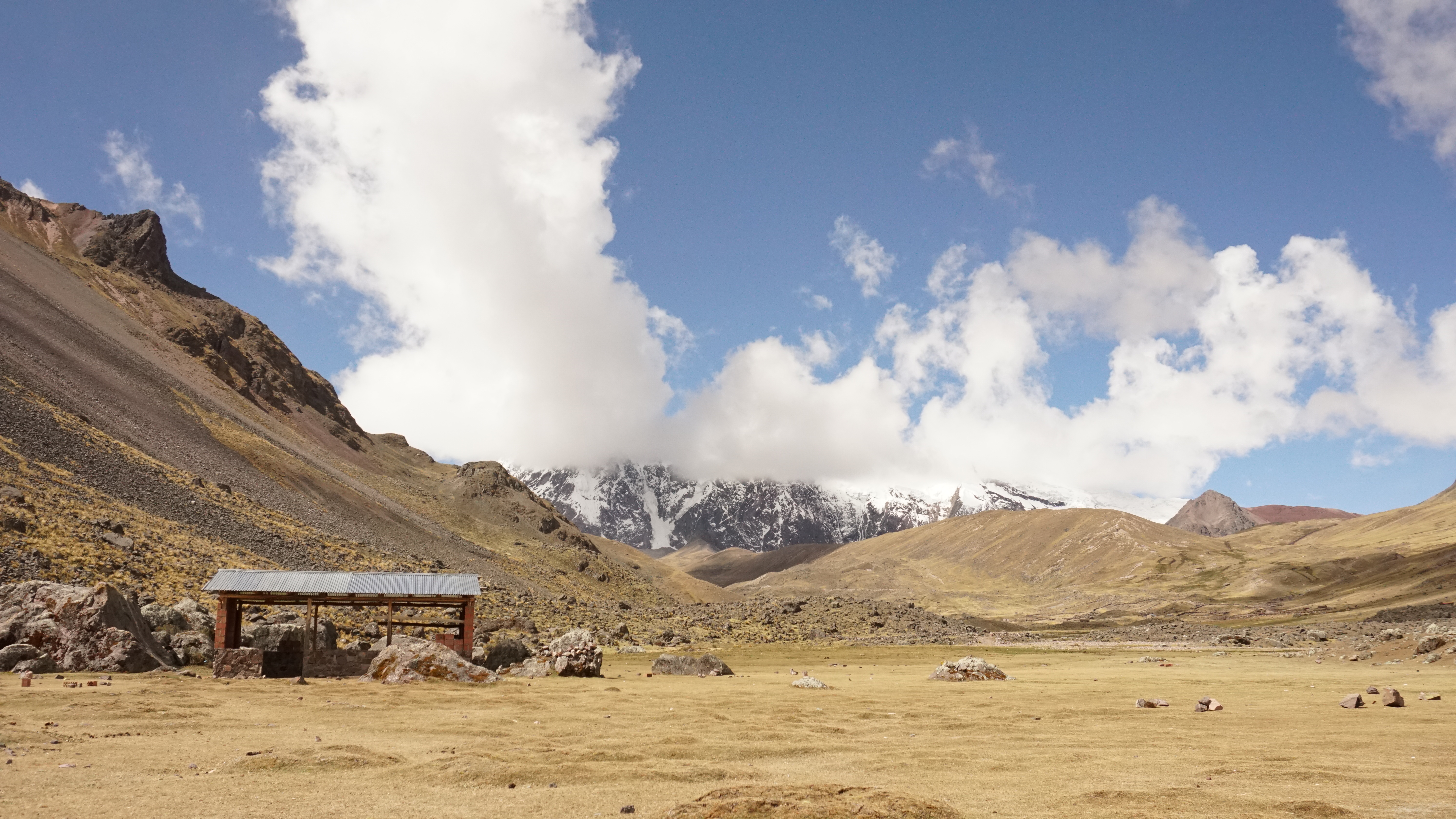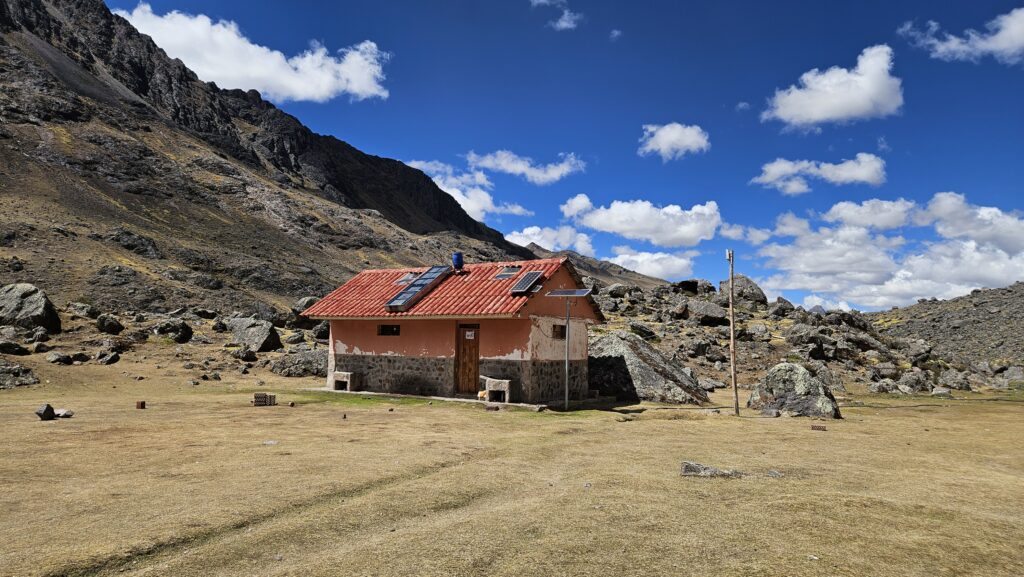 Après quelques jours à Pitumarca à faire des stocks de nourriture, nous montons et passons une nuit à Chillca afin de s’acclimater à notre premier 4600m d’altitude. C’était la première fois que nous étions au-dessus des 4100m. Déjà le lendemain, ce n’était pas facile: Cassandre ne se sentait pas au top, les jambes faibles. L’effet de l’altitude : la récupération physique n’est pas à son maximum. Le 2e jour, nous nous sommes dirigés vers le camping au pied du 1er col. Nous avons décidé de nous arrêter tôt et de passer l’après-midi à récupérer, à se reposer avant d’attaquer le col le lendemain. Une tienda est disponible, avec quelques articles à vendre, du wifi, des toilettes et des douches, à l’eau froide bien entendu.