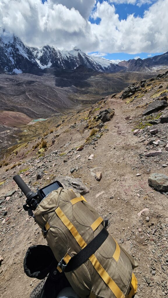 Devant nos tasses de thé fumantes, nous faisons le point. Ausangate, c’est censé être 8 jours avec 3 cols à plus de 5000m d’altitude. Hors de question de revivre la même journée que la veille à plusieurs reprises. Nous avons atteint nos limites. Et surtout, la météo annonce de la neige dans les jours à venir… Alors, très vite, une décision s’impose: faire demi-tour. Nous avons préféré la sécurité et l’humilité à l’ego. La haute montagne, ça peut ne pas pardonner… Nous sommes redescendus, sous un soleil radieux, heureux tout de même de cette expérience mais avec une pointe de regret de ne pas avoir tout simplement marché. Sans nos vélos. C’est un trek. Qui est fait pour être marché. Il n’y a pas grand chose de cyclable et les conditions changeantes de la haute montagne peuvent rendre l’expérience hike-a-bike très rapidement dangereuse. Il s’agit là de notre avis personnel, bien entendu…