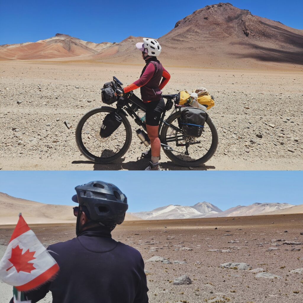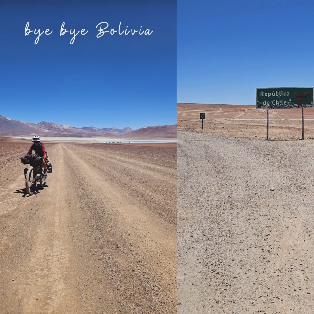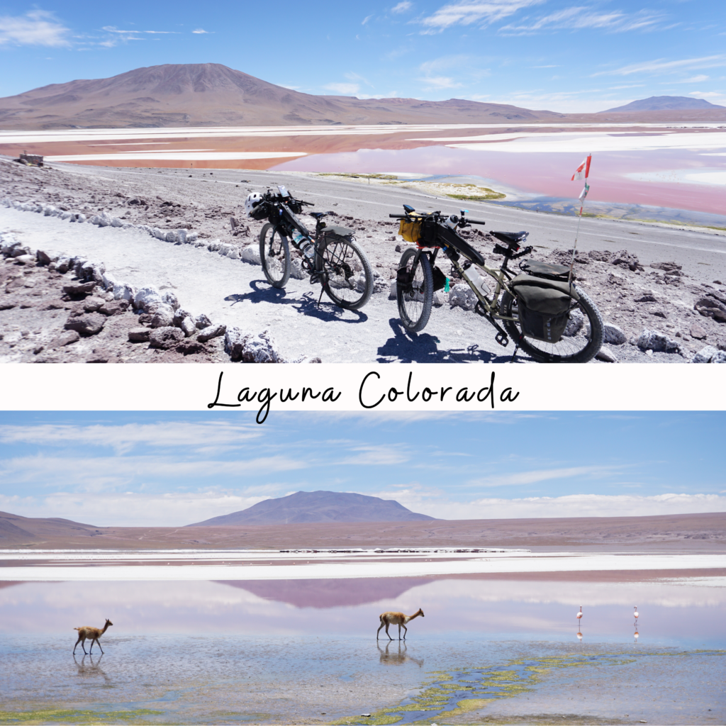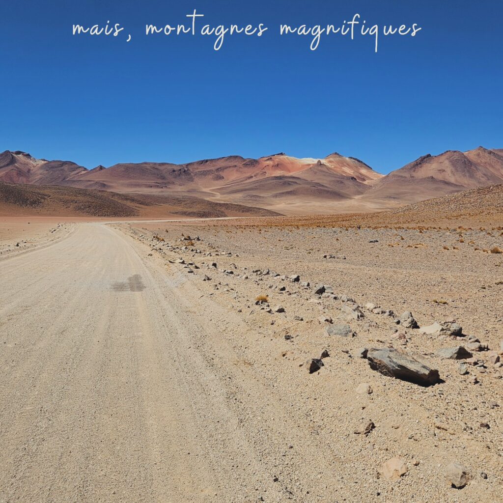 Nous avons longtemps hésité avant d’embarquer sur la Ruta de Las Lagunas. Nous oscillions entre excitation et appréhension… Le meilleur compromis a été de se rendre directement à Laguna Colorada avec une movilidad. Et nous n’avons vraiment pas regretté! Nous avons passé 3 jours de Laguna Colorada jusqu’à Hito Cajon. 3 jours assez difficiles mais dans un environnement unique, grandiose et magnifique. Le vent est définitivement le pire ennemi de tout cycliste sur cette piste. Le partage de la piste avec les 4×4 peut parfois être compliqué, surtout lorsqu’ils repartent à vide et qu’ils n’ont plus aucune retenue en raison de l’absence de touriste à bord. Toutefois, tous les efforts déployés valent clairement la peine pour être dans ce désert si éloigné de tout et si unique. Nous en avons pris plein les yeux et c’est définitivement un gros coup de cœur. Nous reviendrons un jour, on l’espère !