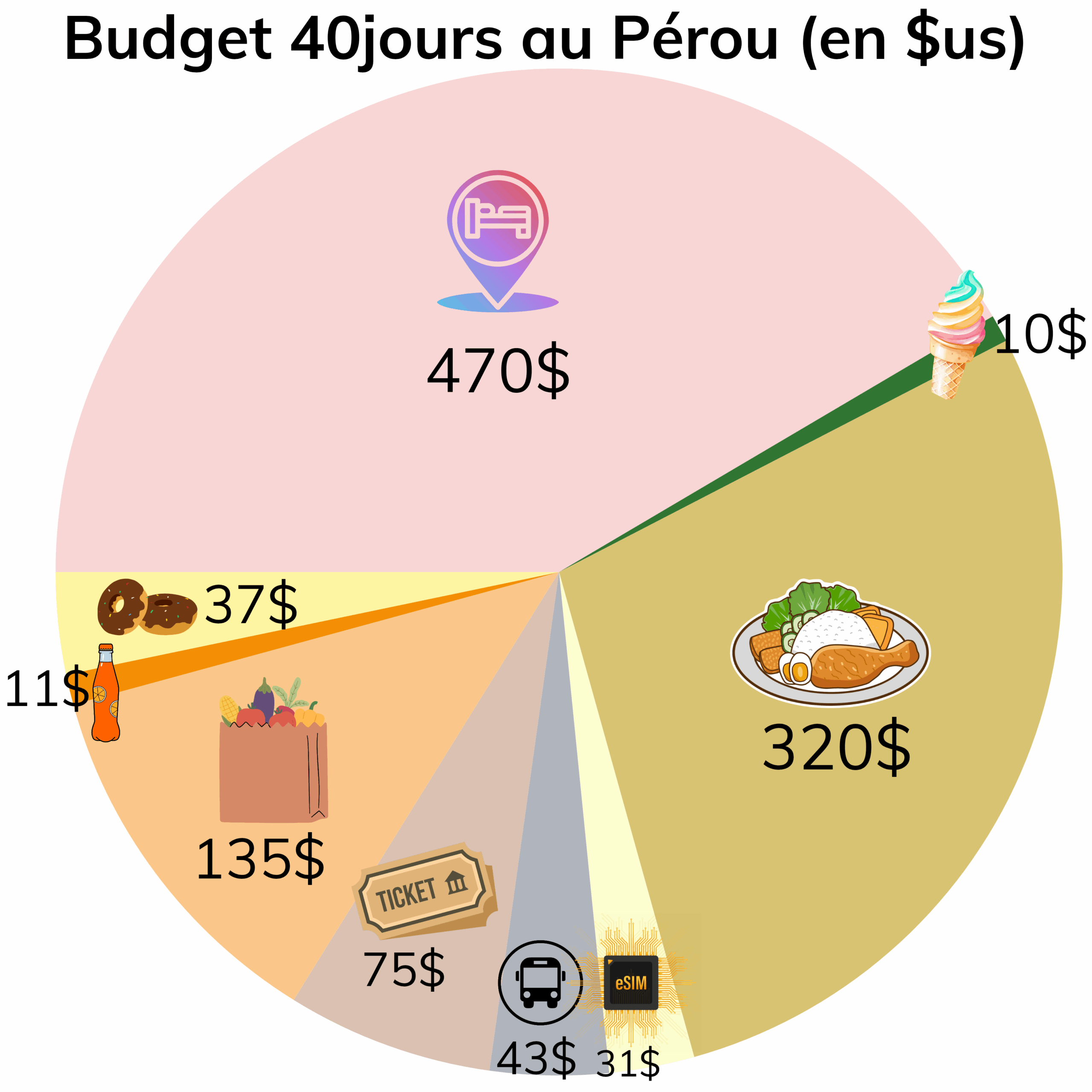 Notre budget pour ces 6 mois en Amérique du sud est de 40$cad par jour pour 2 (soit 28.5$us ou 24.5€). Au Pérou, nous avons été capables de tenir ce budget, même en mangeant la plupart du temps dans les restaurants locaux (nous avons très peu cuisiné 🫣).