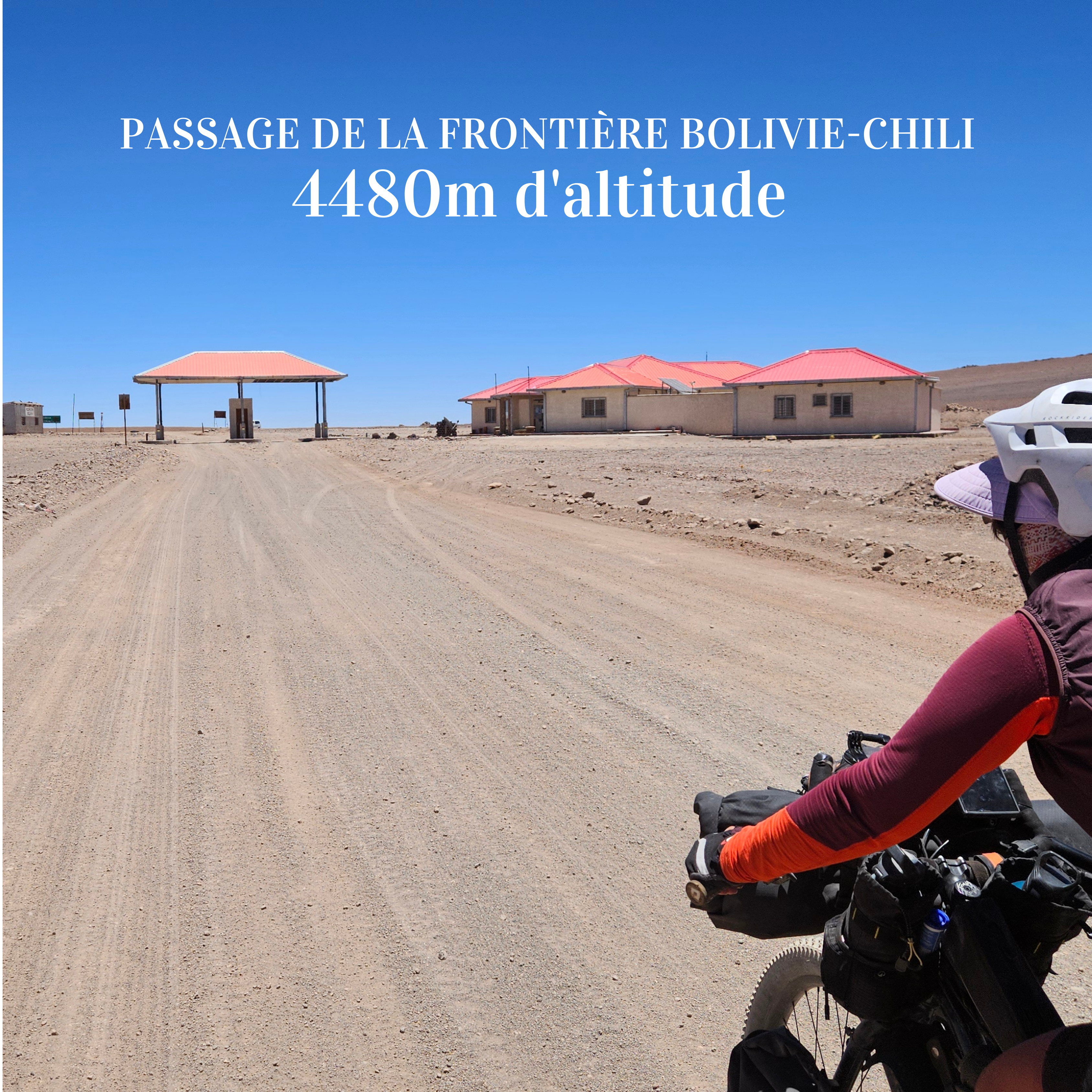 Nous sommes arrivés du Pérou et avons traversé la frontière Tilali/Puerto Acosta à vélo. Il faut d’abord passer par le bureau d’immigration à Tilali pour tamponner son passeport le jour de la sortie. Puis, après un dernier poste de contrôle à la frontière, commence un 8km de montée dans un no man’s land asphalté coté Pérou mais gravel côté Bolivie. Par moment, de multiples sentiers apparaissent et il est important de suivre la trace GPS. Arrivés à Tilali, nous voulions prendre notre temps, aller manger sur la place principale. Mais, des policiers nous sont tombés dessus dès l’entrée dans Tilali. Ils nous ont pressés d’aller faire tamponner nos passeports au bureau d’immigration qui se trouve sur la route principale, à quelques km en dehors du village. Là-bas, les agents d’immigration nous ont seulement demandé notre itinéraire, ainsi qu’une adresse à La Paz. Nous avons dû passer aux douanes, l’édifice d’en face, pour remplir un formulaire en ligne. Et le tour était joué!